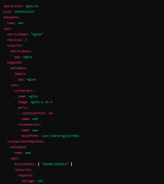 برای پیادهسازی یک برنامه Stateful در Kubernetes، باید از StatefulSet و Persistent Volume (PV) استفاده کنید. در زیر مراحل پیادهسازی یک Stateful application آورده شده است:
